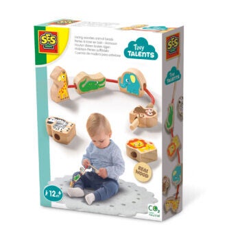 Met dit vrolijke kralensnoer van SES Creative kunnen kleintjes leren rijgen, op een makkelijke en veilige manier! De grote kralen zijn makkelijk om vast te houden en de kralen met vrolijke dieren kunnen zo aan elkaar geregen worden. Het rijgkoord komt met een vaste dierenkraal en houten insteker, waardoor het rijgen erg gemakkelijk is.
