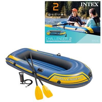 Intex Challenger tweepersoons boot, met een draagvermogen van maximaal 200 kg. Met een extra sterke vinylconstructie, die bestand is tegen benzine, olie en zout water. Speciaal ontwikkeld voor intensief gebruik en bestand tegen slijtage, stoten en zonlicht. Voorzien van 3 luchtkamers met extra