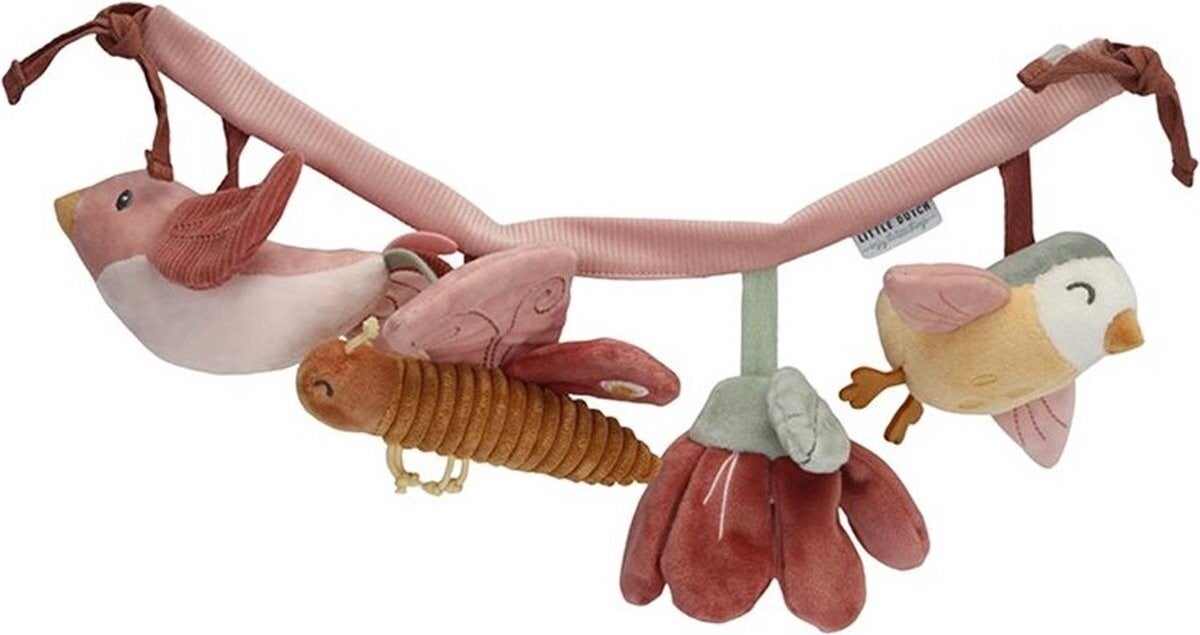 Rammel, piep, knisper. Geef je kindje een zintuiglijke ervaring met deze kleurrijke wagenspanner. Met vier verschillende karakters om naar te kijken en mee te spelen, wordt de ontwikkeling van de hand-oogcoördinatie gestimuleerd. Bevestig de wagenspanner eenvoudig aan een autostoeltje of kinderwagen. Vlinder Lily, vogeltje Olivia en mus Abby entertainen jouw kleintje graag onderweg.
