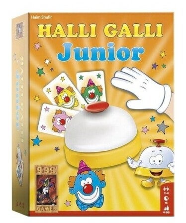 De junior versie van het succesvolle "spel met de bel". Om beurten draaien de spelers een kaart open. Zodra je twee dezelfde lachende clowns ziet, sla je bliksemsnel op de bel.