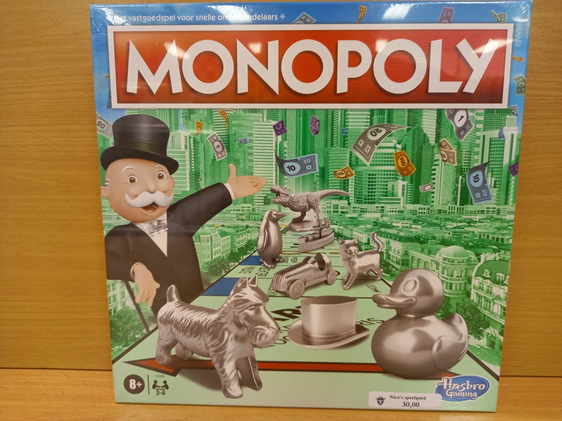 Dit is het beroemde vastgoedspel voor snelle onderhandelaars waarin spelers kopen, verkopen, onderhandelen en ruilen om de ultieme rijkdom te behalen. In deze vernieuwde versie van het klassieke spel zijn de badeend, de tyrannosaurus rex en de pinguïn aan de pionnenfamilie toegevoegd. De ingrediënten om te winnen zijn natuurlijk tactiek, maar ook een beetje geluk. Het doel van het spel is om groot te worden door straten te kopen, huizen en hotels te bouwen. Koop de Grote Markt Groningen of de Kalverstraat Amsterdam. Bij veel mensen zal dit spel nostalgie opwekken, maar het is ook nog steeds een fantastisch spel om voor de eerste keer te spelen.