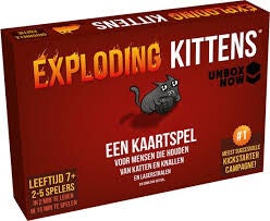 Exploding Kittens is een fantastisch kaartspel voor mensen die van katten, explosies, laserstralen en soms ook van geiten houden. Dit tactische spel is een variant van Russisch roulette, maar dan met exploderende kittens. Je neemt kaarten van de stapel totdat je één van de gevreesde exploderende kittens trekt. Dan heb je meteen verloren. Met alle andere kaarten kun je jezelf verdedigen, aanvallen, een beurt overslaan of de katten afleiden. Alle kaarten zijn voorzien van hilarische illustraties van The Oatmeal.