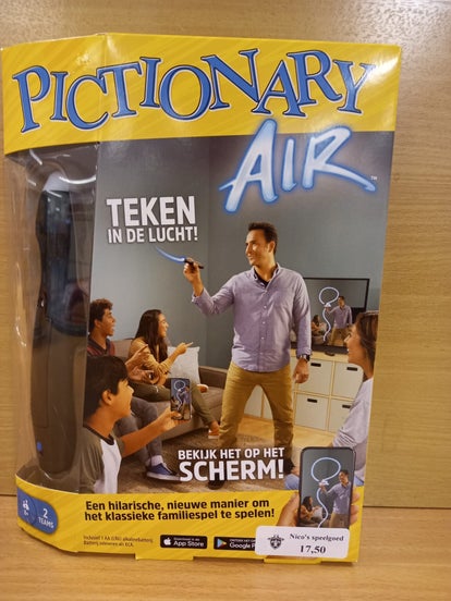 Sta op en laat zien wat je kunt met Pictionary Air, een doldwaze manier om het klassieke tekenspel te spelen! Download de Pictionary Air-app op jouw smartphone of tablet en je kunt spelen. Richt de camera in de app op de speler die tekent en je ziet die speler mét zijn of haar tekening op het scherm van jouw smart-apparaat. Teken in de lucht en je ziet de tekening op het scherm. De score wordt bijgehouden in de app, zodat je altijd kunt zien hoe je team ervoor staat. Een superleuk gezelschapsspel voor een feestje of een spelletjesavond!