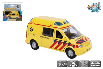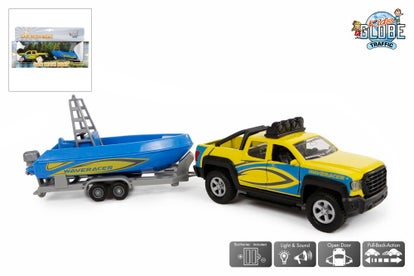 De Kids Globe Terreinwagen komt met een aanhanger en een shovel.