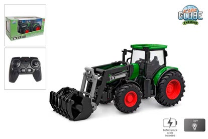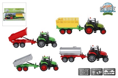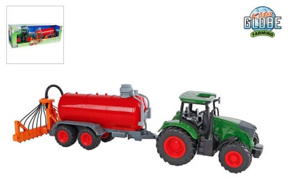 kids Globe tractor met 8 accessoires freewheel 30cm groen